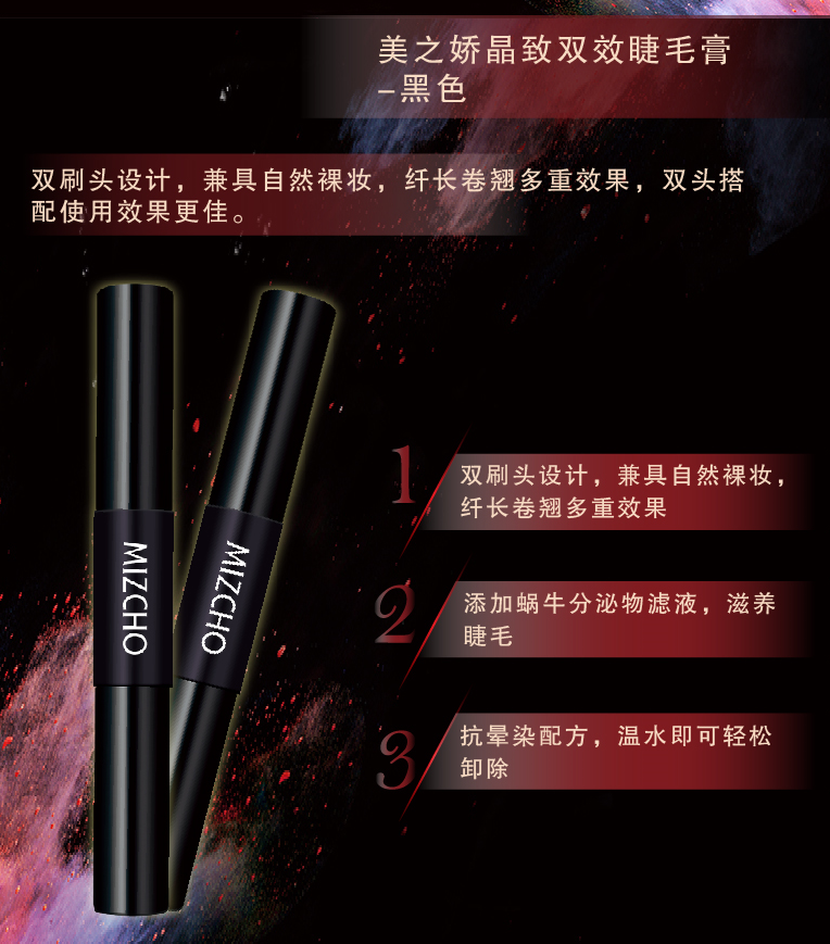 雙刷頭設(shè)計(jì),兼具自然裸妝,纖長(zhǎng)卷翹多重效果,雙頭搭配使用效果更佳。