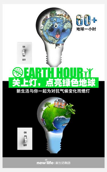 2013年3月23日晚8時(shí)30分(2013年因與復(fù)活節(jié)日期沖突,故提前至3月23日),新生活集團(tuán)(中國(guó))有限公司積極參與了由世界自然基金會(huì)(WWF)發(fā)起的“地球一小時(shí)”活動(dòng),將集團(tuán)上下的用電設(shè)備(除必要的燈光和用電設(shè)備)關(guān)閉一小時(shí),以此來響應(yīng)此次活動(dòng)。這雖然是新生活集團(tuán)(中國(guó))有限公司第一次參加“地球一小時(shí)”活動(dòng),但卻不是第一次參加環(huán)?;顒?dòng)。