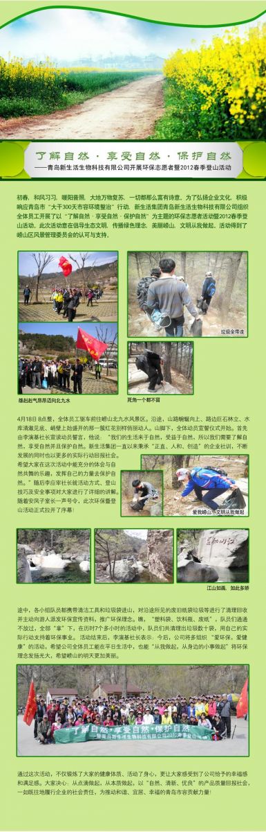 青島新生活生物科技有限公司開展環(huán)保志愿者暨2012春季登山活動