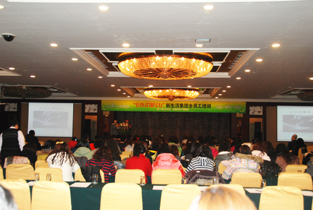 2011年2月18日上午8點(diǎn),一場(chǎng) 代表當(dāng)今最新觀點(diǎn)的“公仆式領(lǐng)導(dǎo)力”企業(yè)員工培訓(xùn)在沈陽(yáng)時(shí)代廣場(chǎng)酒店四樓宴會(huì)廳隆重而熱烈的舉行。新生活集團(tuán)總部、沈陽(yáng)工廠、瓶廠及駐沈子公司320余人 接受了此次培訓(xùn)。這場(chǎng)由新生活集團(tuán)教育研究所主辦的全員培訓(xùn)特別邀請(qǐng)了延邊大學(xué)知名專家金圣俊先生、延邊大學(xué)科技學(xué)院商經(jīng)學(xué)部教授金紅英女士先后主講。集 團(tuán)董事長(zhǎng)安鳳洛先生親自出席培訓(xùn)并發(fā)表講話。2011年新年伊始,新生活集團(tuán)快速而順利地完成了一系列的內(nèi)部調(diào)整,新的工作即將展開。為了最大限度的發(fā)揮 全體員工能力和潛力,使新生活成員以更好的精神狀態(tài)迎接新的挑戰(zhàn),更好的完成2011年工作目標(biāo),集團(tuán)領(lǐng)導(dǎo)專門舉辦了此次培訓(xùn)。