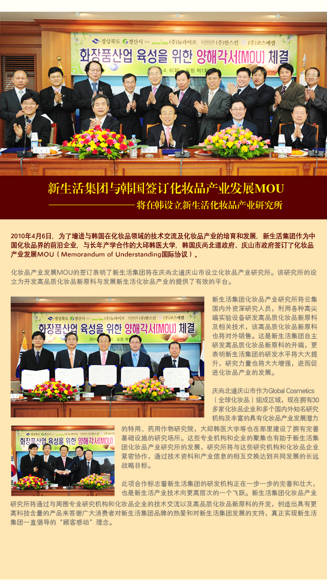 新生活集團與韓國簽訂化妝品產品發(fā)展MOU