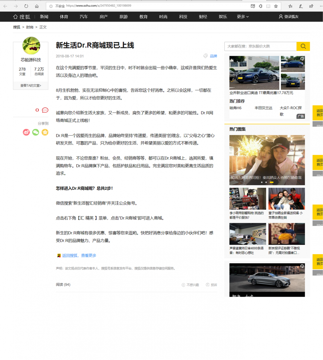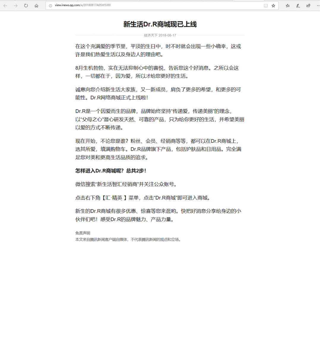 (網(wǎng)絡(luò)媒體)新生活Dr.R商城現(xiàn)已上線
