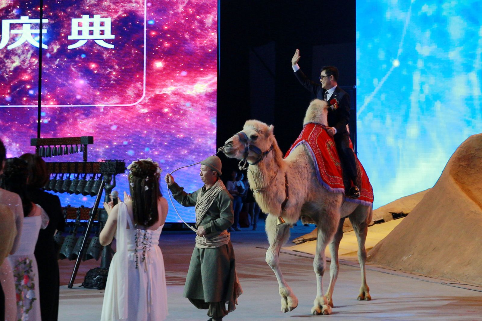 在慶典的最后,演繹了深受觀眾喜愛的《駝鈴傳奇》秀,《駝鈴傳奇》將富有創(chuàng)意的科技手段與燦爛的絲路文化相融合隨著跌宕起伏的情節(jié),我們乘坐在會(huì)跑的觀眾席,穿越時(shí)空,回到千年前大唐時(shí)期的絲路古道。給我們帶來了超凡的視覺體驗(yàn)和心靈震撼,以正能量傳播西安最輝煌歷史時(shí)期的文化傳奇。