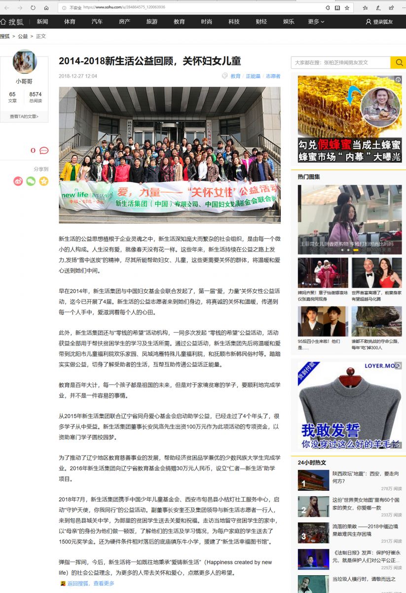 (網(wǎng)絡(luò)媒體)2014-2018新生活公益回顧,關(guān)懷婦女兒童
