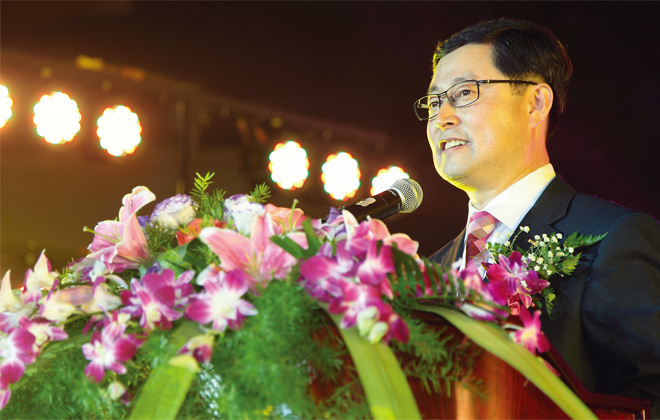 在歡聚慶祝的日子里,節(jié)目表演是最可以表達內(nèi)心祝福的方式。慶典中節(jié)目表演也將慶典氛圍一次又一次的推向高潮。除了邀請到韓國專業(yè)的舞蹈團體以外,其余的都是各個地區(qū)自己精心準備的自編自導的節(jié)目。那動如脫兔的俊俏舞姿、飄灑絢爛的各色裙擺、行云流水的陣形變換,與如夢似幻的舞美設計配合得水乳交融。而“企業(yè)感動故事人物”陳佳麗的事跡也讓人們濕潤了眼眶,她親手為董事長織的紅圍巾在這個秋末時節(jié)也溫暖了董事長和所有新生活人的心。